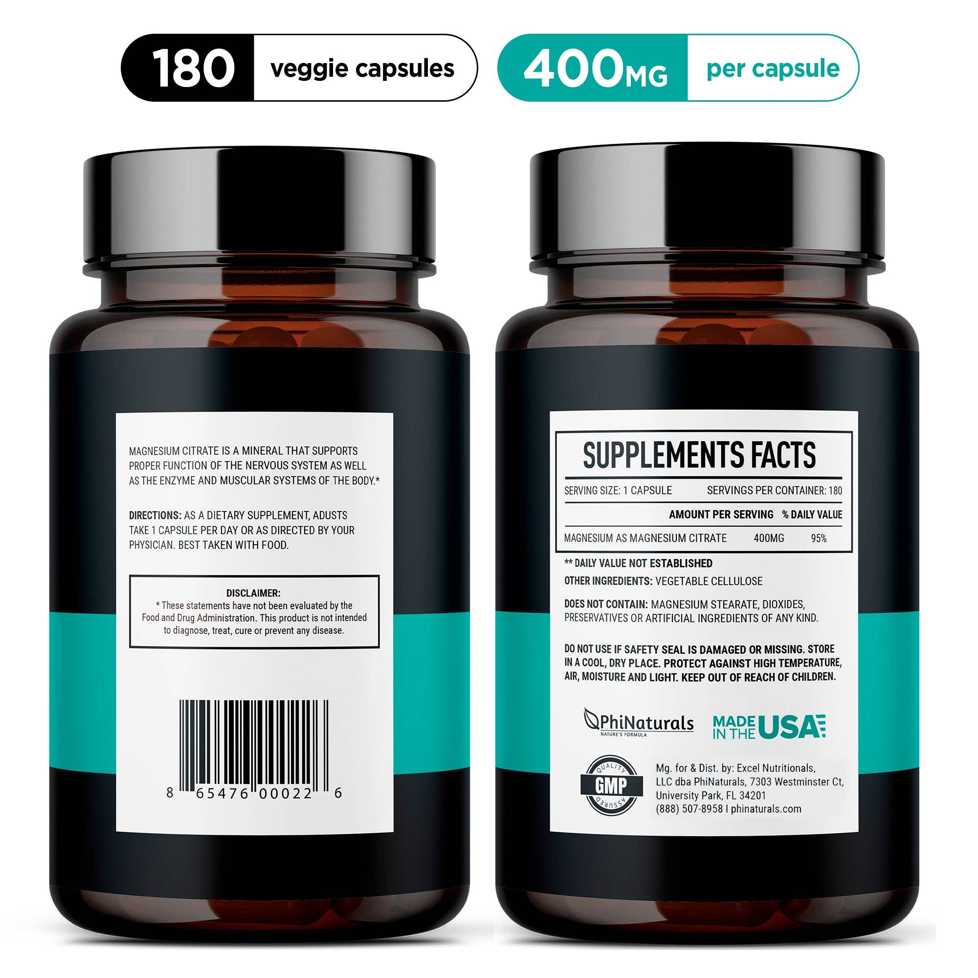 Magnesium is Essential For Life Our magnesium complex is non-gmo and gluten free. AIDS SLEEP & RELAXATION Studies show magnesium can increase GABA levels which encourages relaxation as well as sleep. Low GABA in your body can make it difficult to relax. Magnesium also has a significant role in regulating your body’s stress response. Our magnesium citrate contains 13 - 14% elemental Mg, you get all the benefits of supplementing with Mg without the side effect of diarrhea. Mg citrate is not a laxative. It contributes to: * Energy and Enzyme production support * Nervous System support * Muscle and Bone support * Helps Boost Energy Levels * Encourages Calm & Relaxation * Promotes Restful Sleep GMO + GLUTEN FREE This Phi Naturals Magnesium Citrate supplement is sourced from all natural, ethical sources – being both GMO and gluten-free.